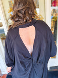 Dress runs BIG! Has pockets and open back.
