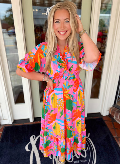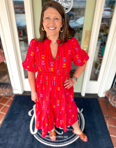 $75.00| /Available in S-L Self: 100% Cotton Lining: 100% Polyester Dress has pockets! True to size, Sawyer is wearing a small