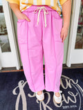 These washed french terry pants are the perfect mix of relaxed and elevated. Designed with a soft, lived-in finish, they feature an easy elastic waistband with an adjustable drawstring for the perfect fit. The oversized utility patch pockets add just the right amount of edge and functionality, giving them that effortless, laid-back vibe while still feeling styled.
