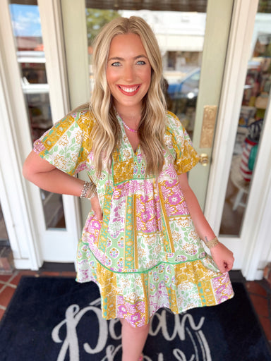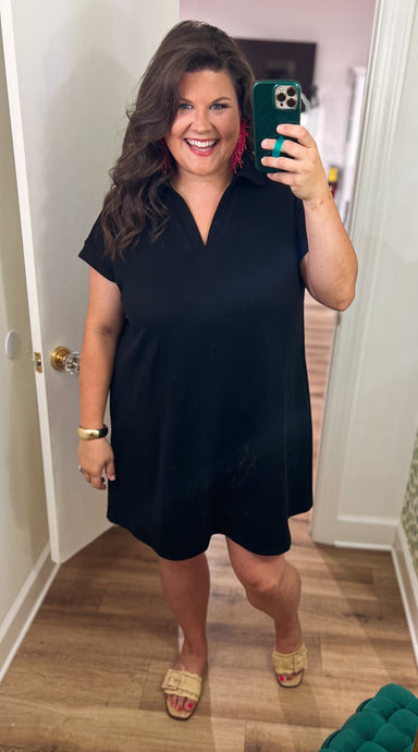 $70.00| /Available in S-3X Self: 98% Polyester, 2% Spandex Contrast: 100% Polyester Dress has pockets! True to size, Jessie is wearing a small