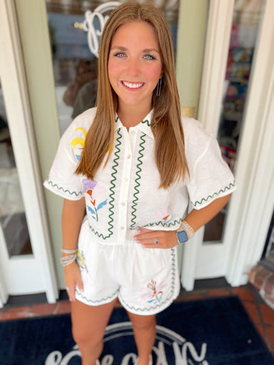 $58.00| /Available in S-L Self: 100% Cotton Contrast: 97% Cotton, 3% Spandex True to size, Jessie is wearing a small