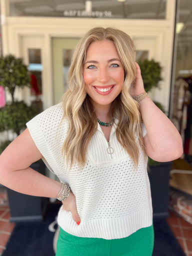 Jenna's favorite pearl earrings, that also look great in your second hole! Gold hoop earrings in second and third holes pictured here not included.