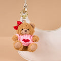 Carry a little love wherever you go with this sweet Teddy Bear Hugs bag charm! This tiny plush bear wears a pink knit sweater adorned with a bright red heart—the perfect addition for your purse, backpack, or keys.