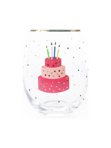 Celebrate in style with this Rhinestone Birthday Cake Stemless Wine Glass, adorned with dazzling rhinestone embellishments that add a festive s...