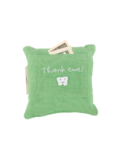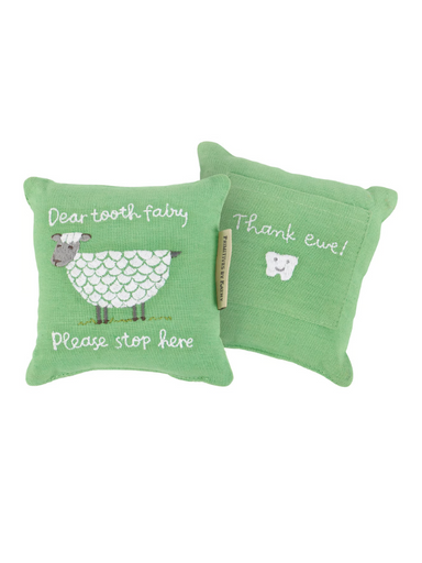 Tooth Fairy Pillow features pocket on the back to hold tooth or tooth fairy reward with a happy tooth design and "Thank Ewe!" sentiment. Designs an...