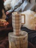 The HydroJug Traveler 32oz in Blair brings classic plaid style to everyday hydration. With a cream base and brown plaid pattern, this mid-size tumbler combines classic style with everyday performance – perfect for commutes, office days, or quick workouts.