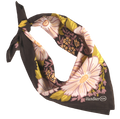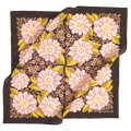 Color: Warm red-violet purple tones, olive and grass green, with peach accents