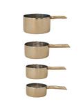 1, 1/2, 1/4 & 1/8 Cup Stainless Steel Measuring Cups w/ Etched Flowers & Brass Twig Shaped Handles, Set of 4