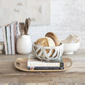 This stoneware bread basket with reactive glaze is a functional and beautiful addition to the tableware collection. Made of sturdy stoneware, it can withstand high temperatures and be used in the oven or microwave. The unique texture of the glaze adds charm and character to each basket. The round and shallow basket is perfect for serving bread, rolls, muffins, or pastries.