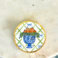 A wood and enamel trinket tray-measuring 5"-features Fall artwork by Rachel Walker. Mango wood. Perfect for your home! Food Safe & Handwash Only.