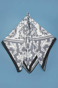 Vintage Floral Print Silky Feel Bandana Scarf in Grey